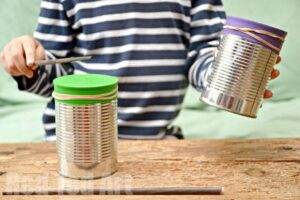 Agar aman saat digunakan, lapisi tepi kaleng dengan isolasi atau kertas karton untuk menghindari luka saat bermain.